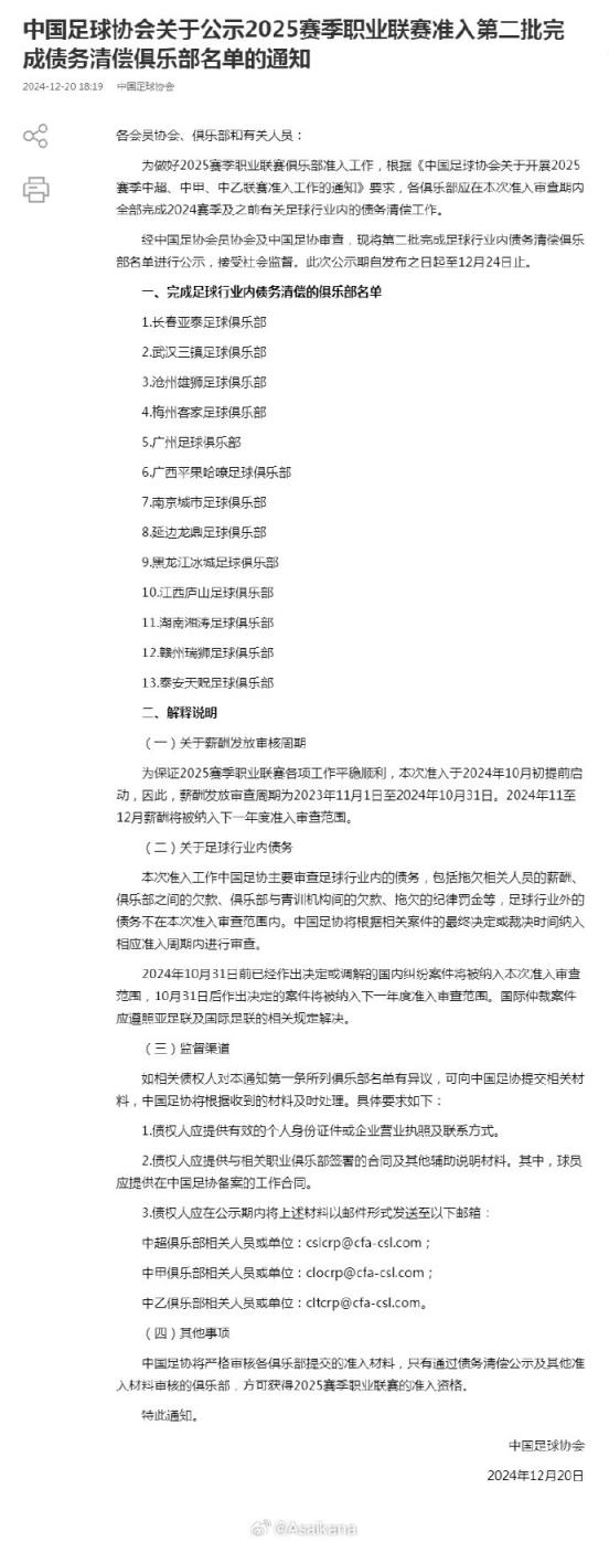 第二批完成債務(wù)清償俱樂(lè)部名單,不在第一批名單的全員上榜